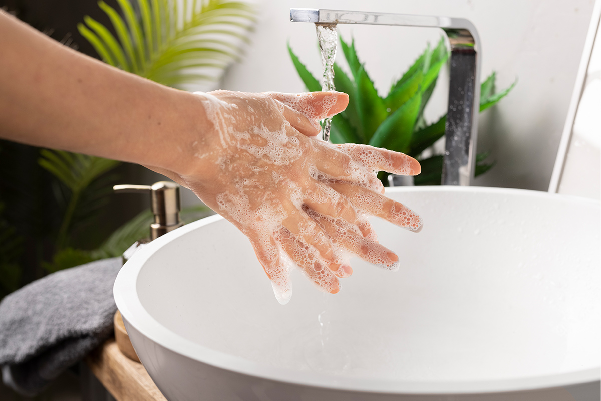 - Eller en az 20 saniye boyunca su ve sabunla yıkanmalıdır.